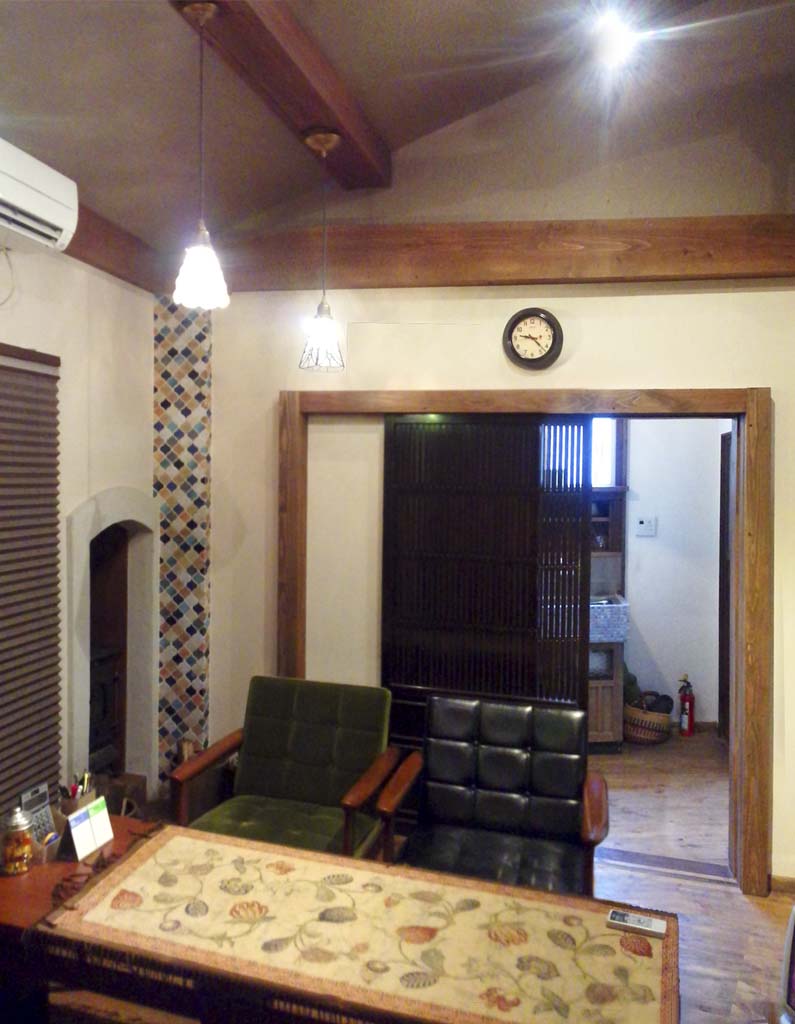 床下下地も納得ゆくまでやり直されて、内装の中心となる聚落(じゅらく)の塗り替え、クロス、天井、床材も調和の中に感性と遊び心がぴかりと光る愉しいチョイスでした。