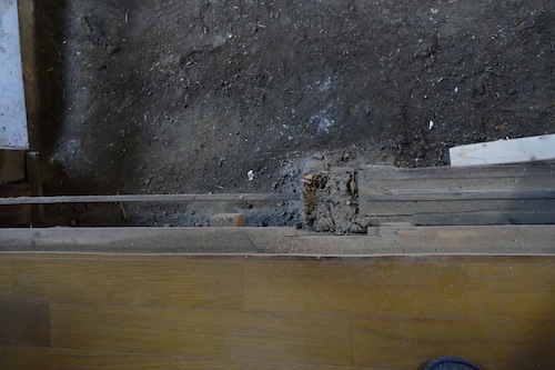 中でも、こちらの柱は被害が進行し、途中で欠損していました。