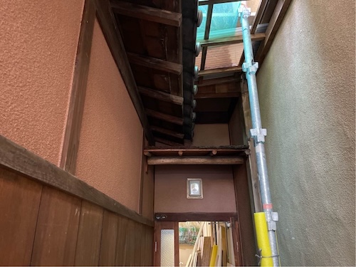 穏やかな環境で、京町家のリノベーション工事が進んでいます。