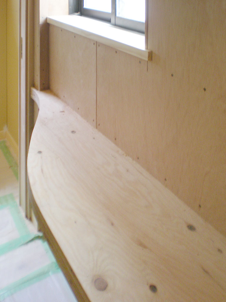 廊下ぞいにあり、家族の動線を遮らないよう曲線でデザインされた