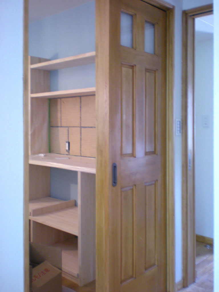 むこうの壁面にはこれから、炊飯器などが収納できる