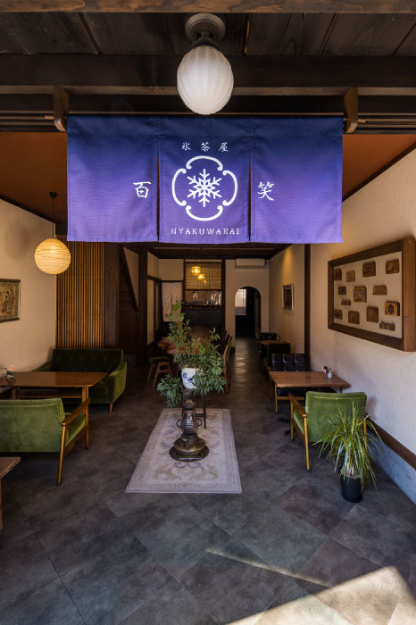 古民家を改装した「百笑」は、レトロで洗練された雰囲気のかき氷店です。アンティーク家具に囲まれ、静かな音楽が流れる店内で、ゆったりと上品なかき氷を楽しめます。