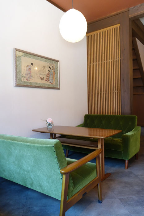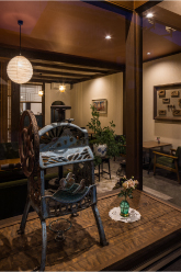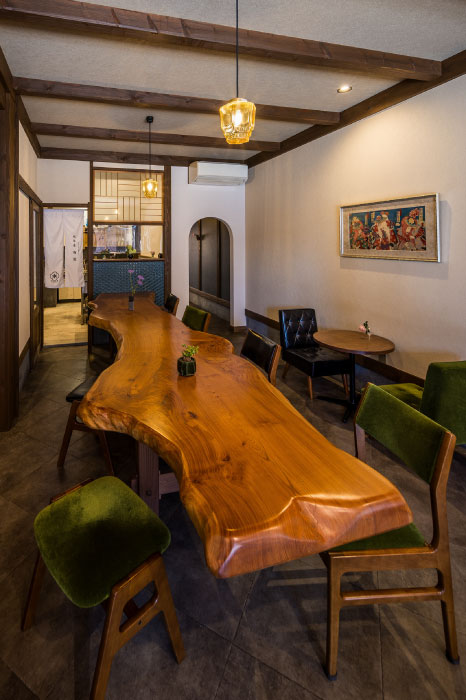 「建築や店内装飾に造詣が深く、和バラを愛する施主様のこだわりが息づく店内は、まるで映画のワンシーンのようなレトロな雰囲気に包まれています。