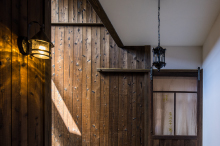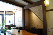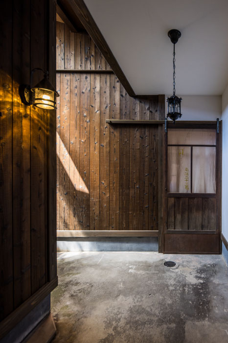 出入口にはアンティーク建具を用い、機能性の中にも懐かしい趣を添えています。