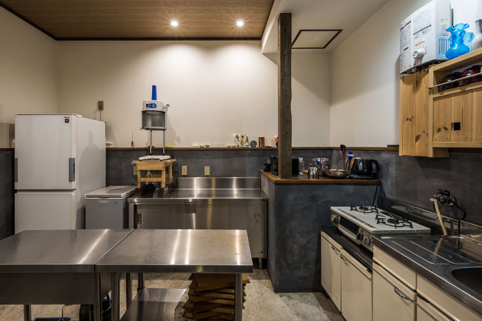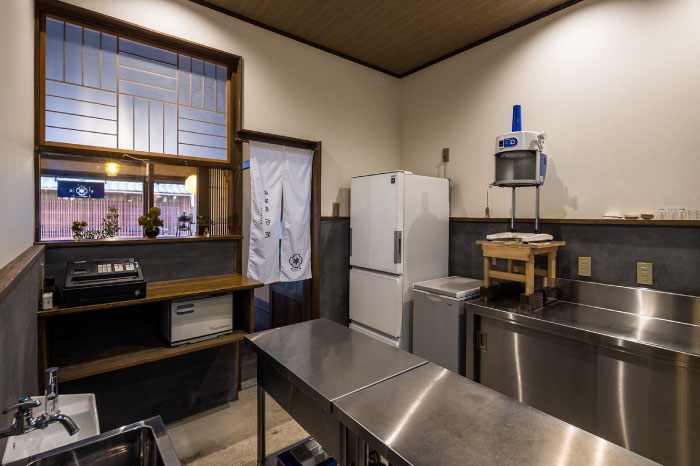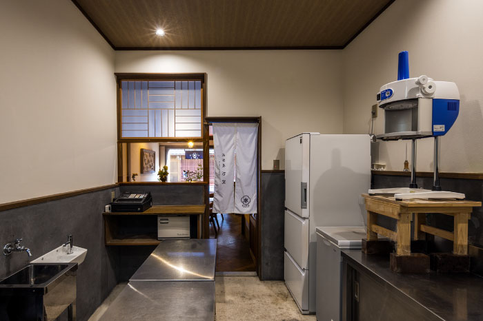 畳の部屋にあったキッチンは、動きやすくシンプルなレイアウトへと改装。かき氷機や器類をすっきりと置けるよう整えました。